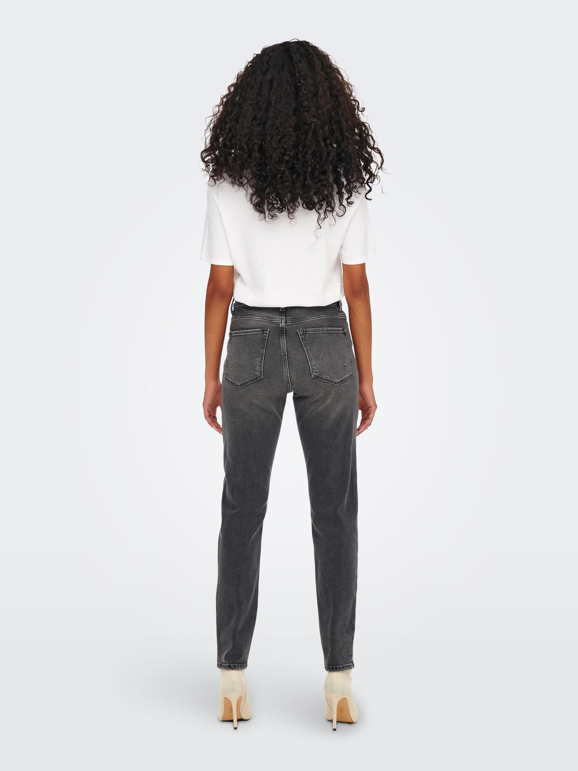 - Jeans mit High Waist- Straight Fit- 5 Taschen- 5 Gürtelschlaufen- Frontverschluss- Knöchellänge- Dehnbarer Stoff- Schritthöhe: 75 cm in Größe 28/34- Das Model trägt Größe 28/3499% Baumwolle, 1% Elasthan