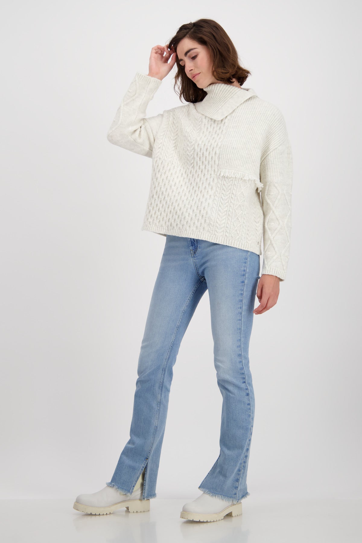 Der Rollkragen Pullover überzeugt mit weichem Griff. Gestrickt aus einem stilvollen Mix mit Zopfmuster und coolen Fransen.38% Polyacryl, 31% Baumwolle, 21% Polyester, 10% Polyamid