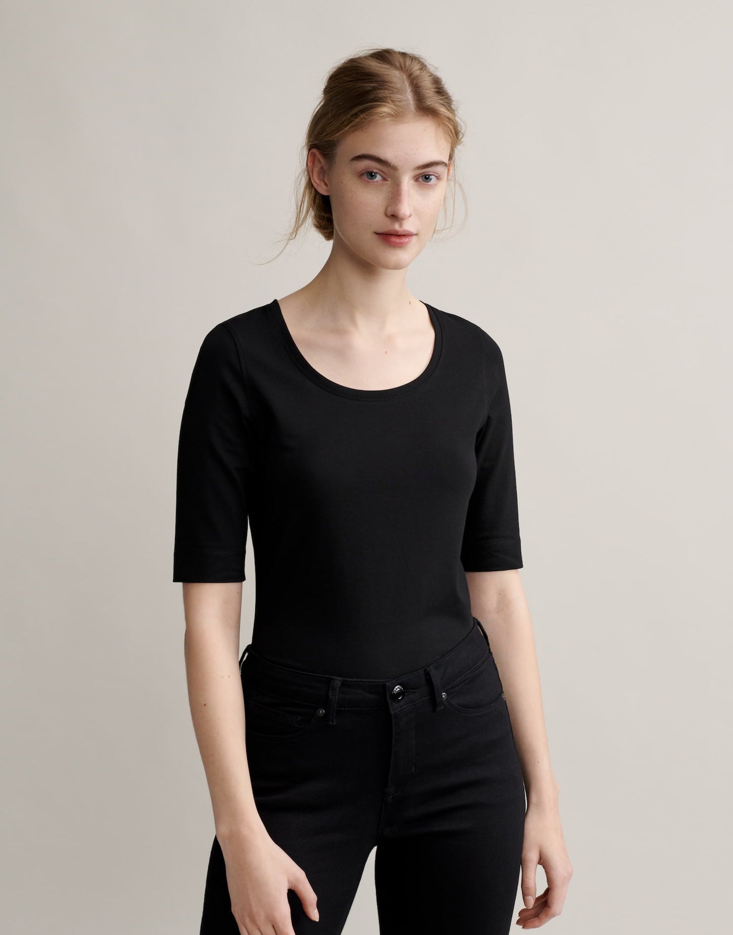 Angenehme Baumwoll-Qualität, Rundhalsausschnitt, körperbetonte Silhouette94% Baumwolle, 6% Elasthan