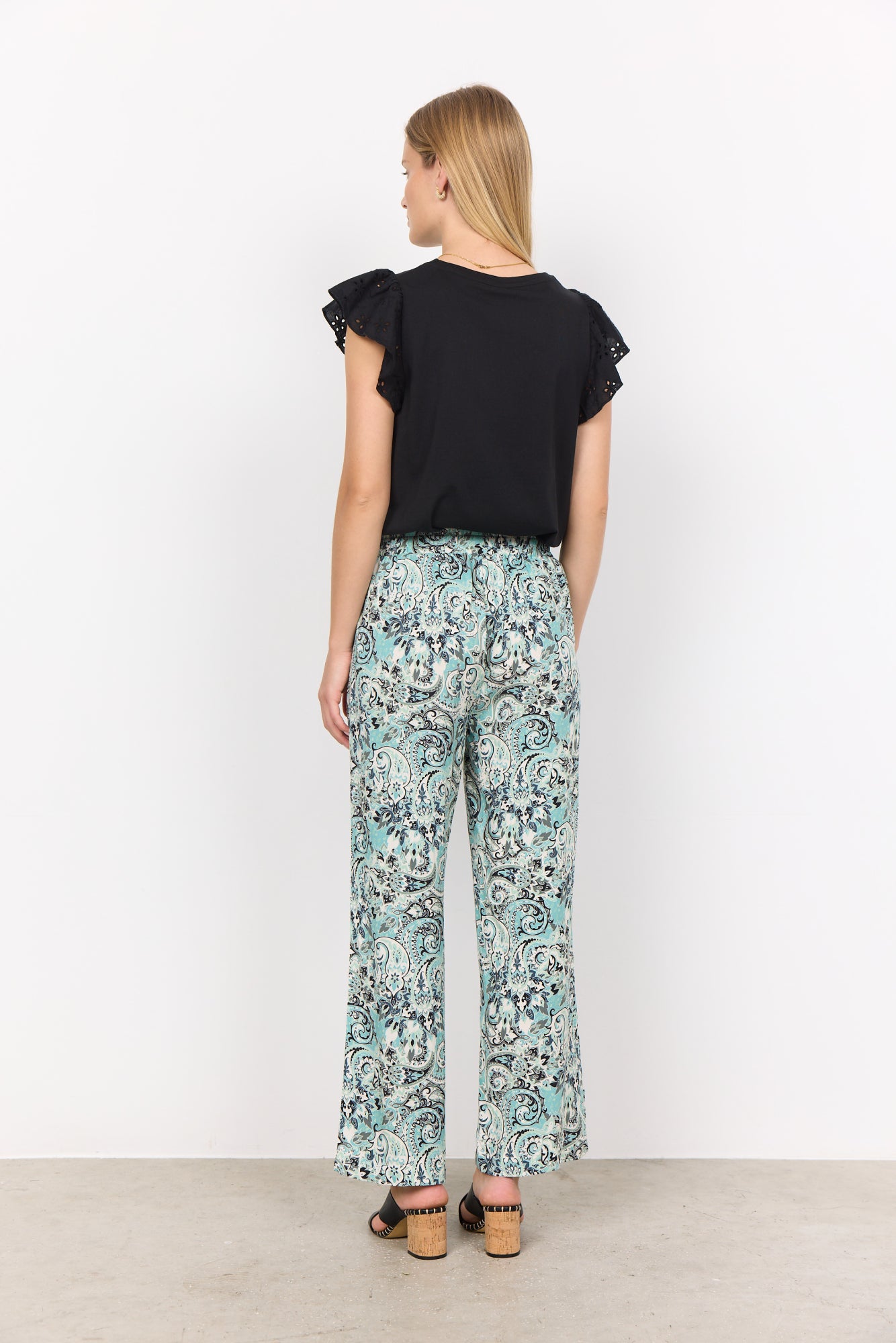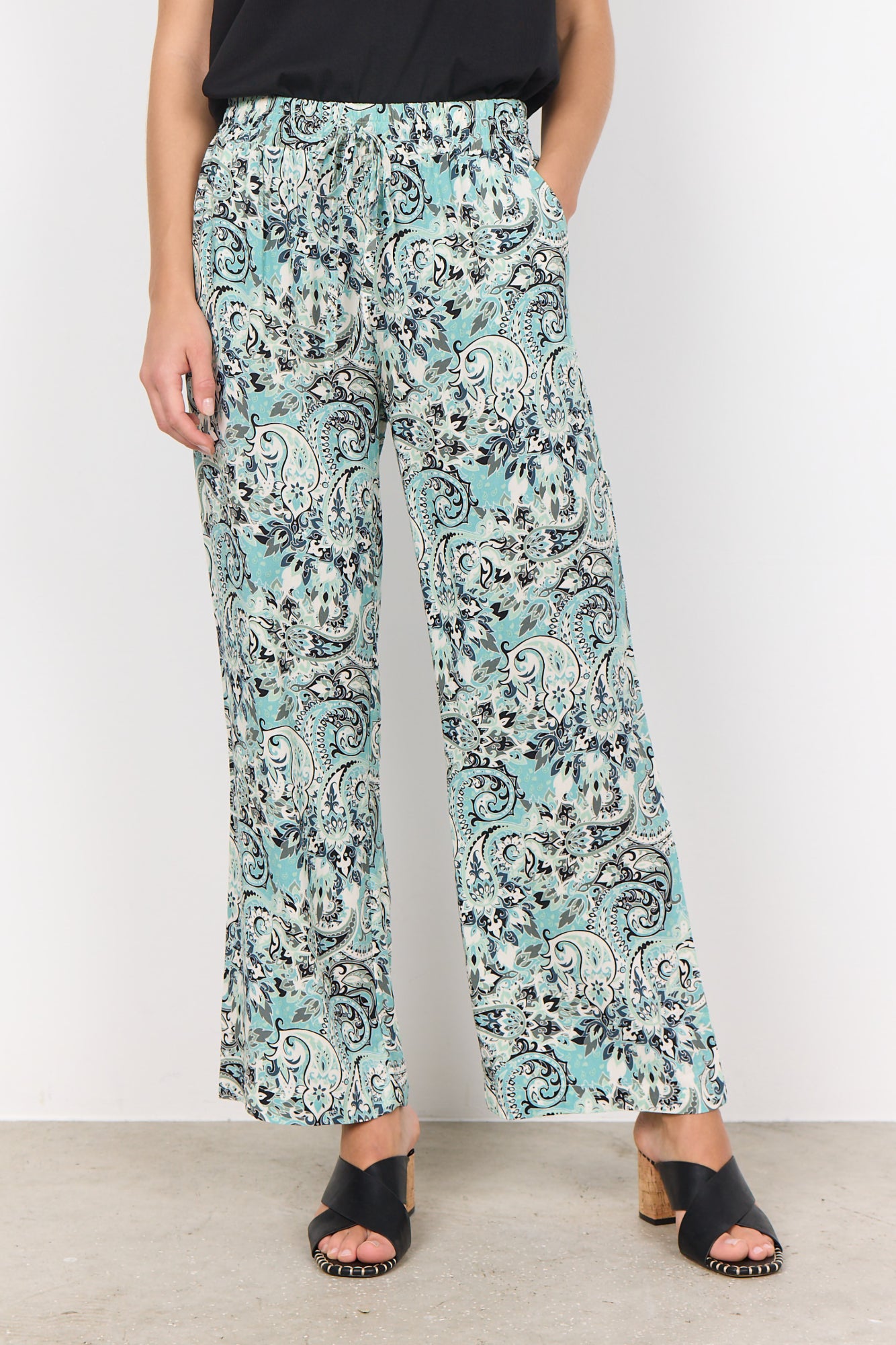SC-Esin 4-C ist eine farbenfrohe Hose aus 100% LENZING™ ECOVERO™ Viskose. Die Hose hat eine hohe Taille mit Kordel, schräge Seitentaschen, eine lockere Passform und einen lebhaften Paisley-Druck. Kombiniere diese schöne Hose mit einem einfachen T-Shirt und ein paar Sandalen für einen schönen Alltagslook.100 % Viskose