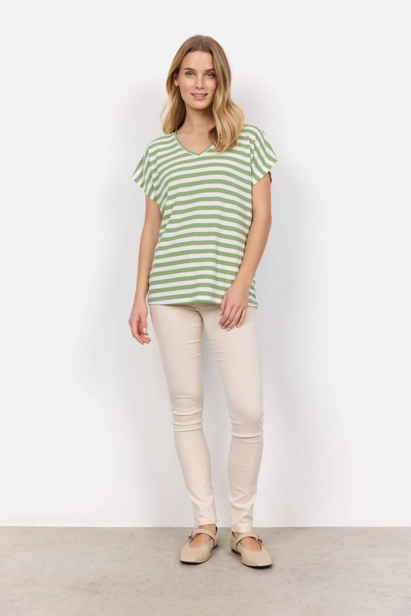 SC-Kaiza 3 ist ein schönes T-Shirt aus einer weichen Mischung aus recyceltem Polyester, LENZING™ ECOVERO™ Viskose und Elastan. Das T-Shirt hat einen schmeichelhaften V-Ausschnitt, kurze Ärmel, eine lockere Passform und ein schönes Streifenmuster. Kombinieren Sie dieses hübsche T-Shirt mit einer locker sitzenden Jeans, ein paar Sneakers und einer Strickweste für einen modernen Look.62 % Polyester, 33 % Viskose, 5 % Elasthan