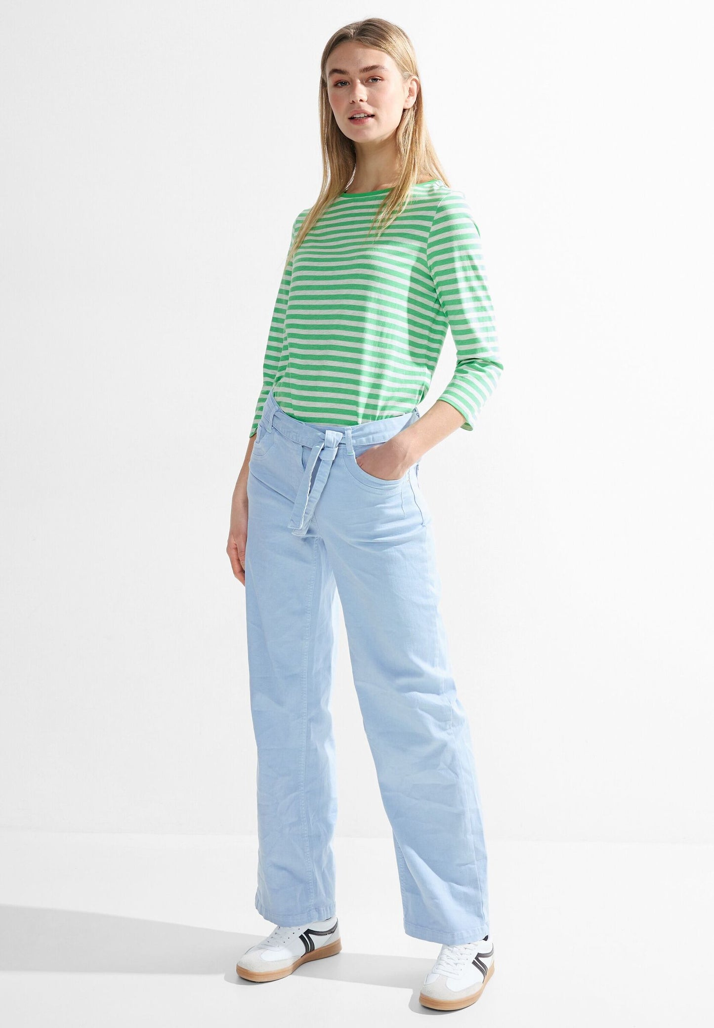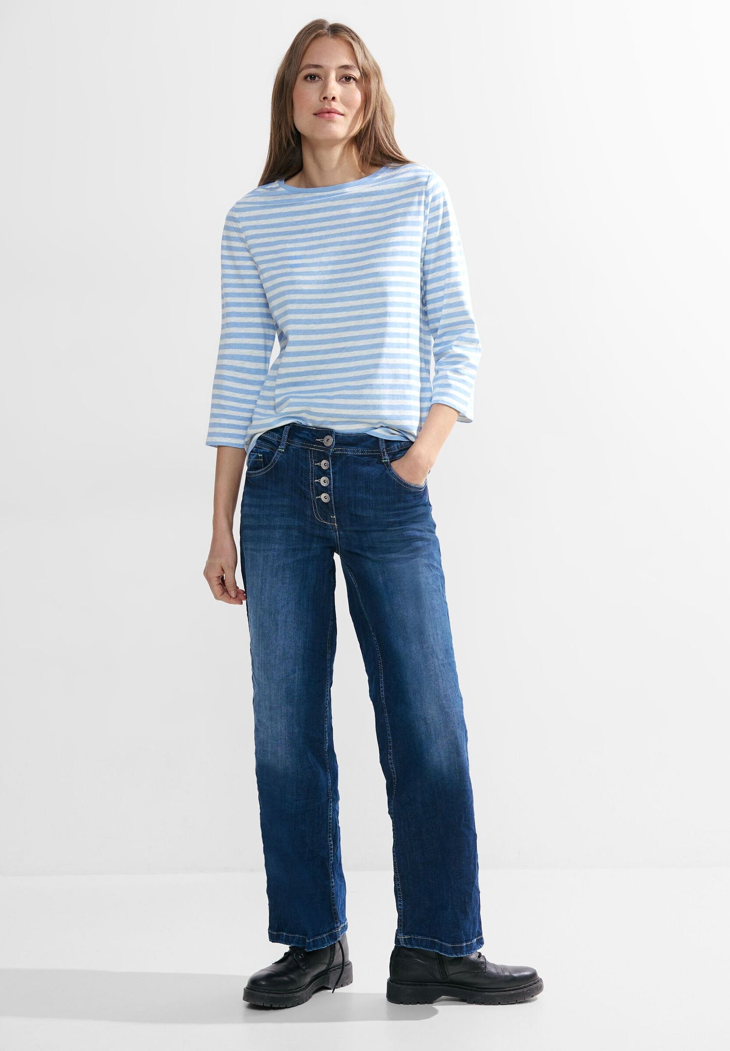 Das Basic-Baumwollshirt von CECIL ist ein vielseitiges Piece, das in keiner Garderobe fehlen sollte. Mit seinen 3/4 Ärmeln, dem U-Boot Ausschnitt und der weichen Jersey-Qualität mit Streifen in Melange-Optik ist es ein idealer Kombipartner. Die Ärmellänge ermöglicht es, das Shirt in verschiedenen Saisons zu tragen, und es ist perfekt für vielfältige Outfit-Kombinationen geeignet.