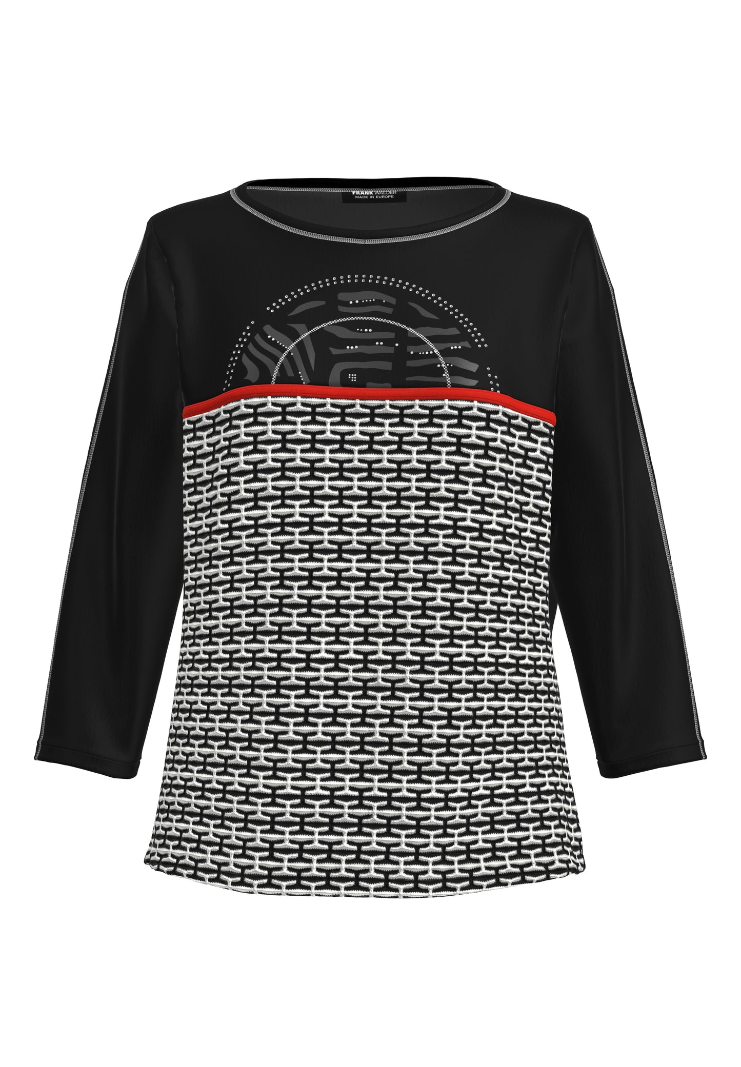 Unser modernes Damenshirt vereint Stil und Komfort in Perfektion. Hergestellt aus hochwertigem CV-Jersey-Druck mit nachhaltigen ECOVERO™ Fasern, ist es pflegeleicht und angenehm zu tragen. Der gerade Schnitt und die normale Passform sorgen für eine schmeichelhafte Silhouette. Besondere Details wie der paspelierte Rundhalsausschnitt und dekorative Overlocknähte verleihen dem Shirt eine interessante Optik. Vielseitig tragbar und ideal zum Kombinieren – ein Must-have für jede Garderobe.96 % Viskose, 4 % Elasthan