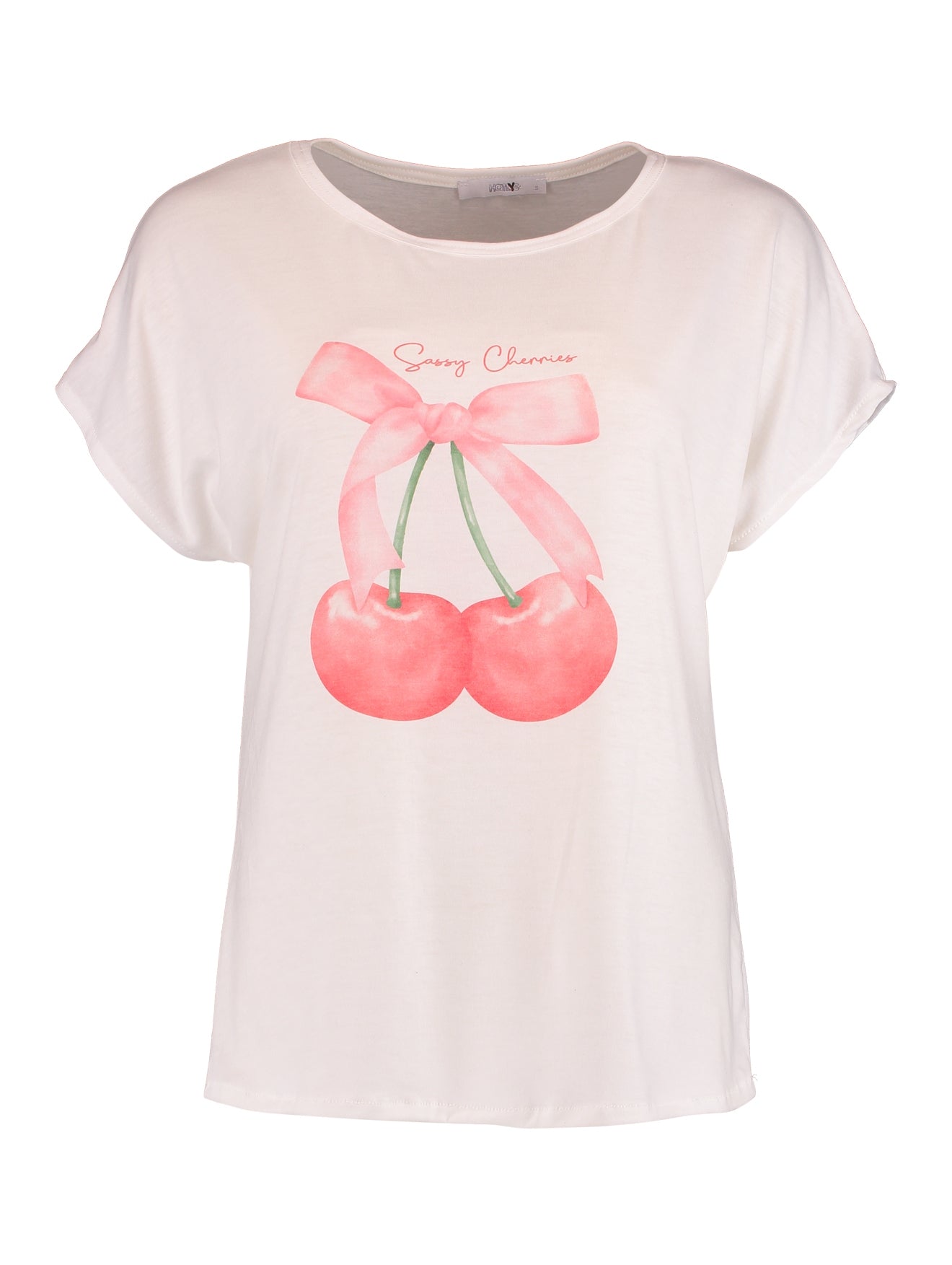 Kurzarm T-Shirt mit Druck und Rundhalsausschnitt.95 % Polyester, 5 % Elasthan
