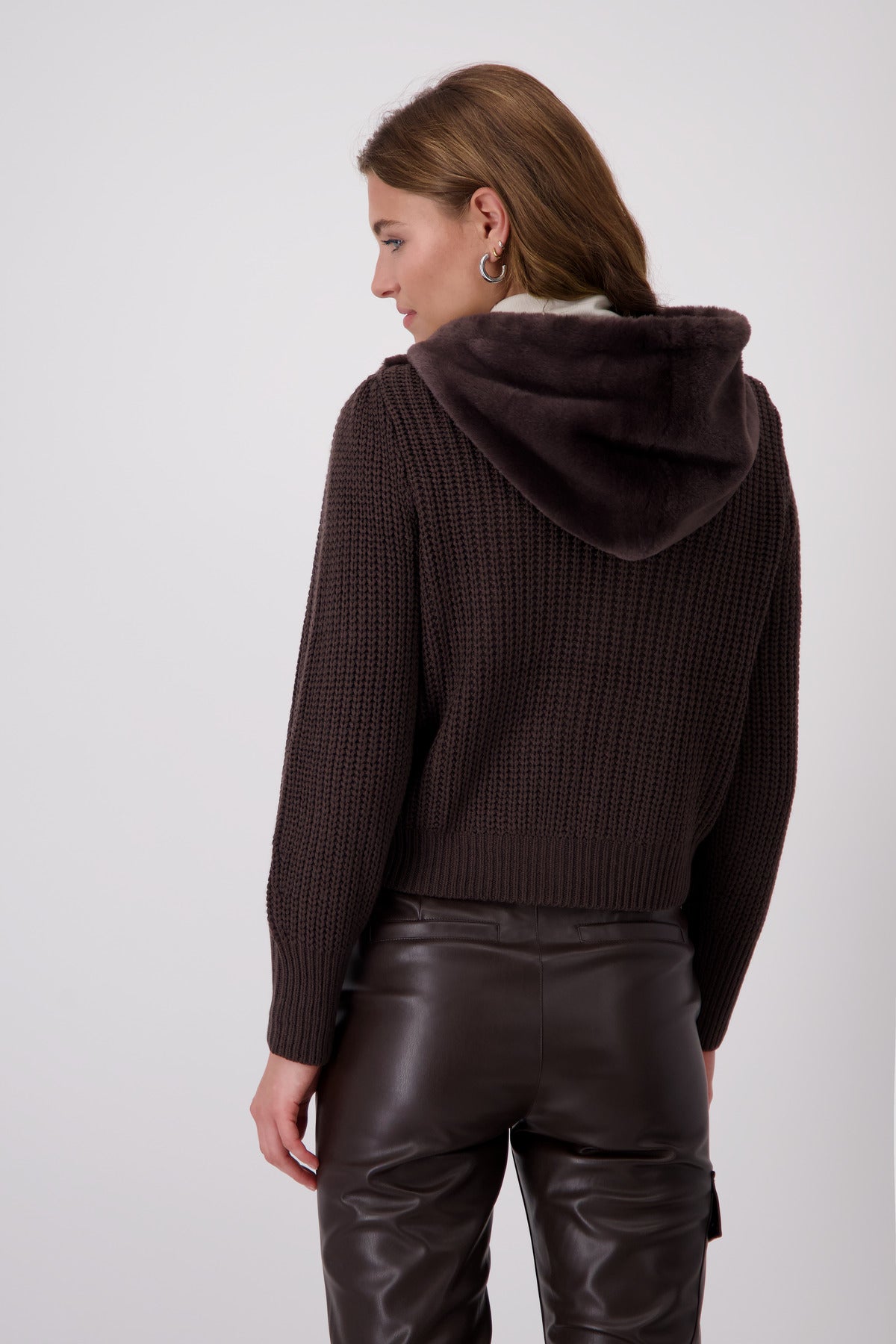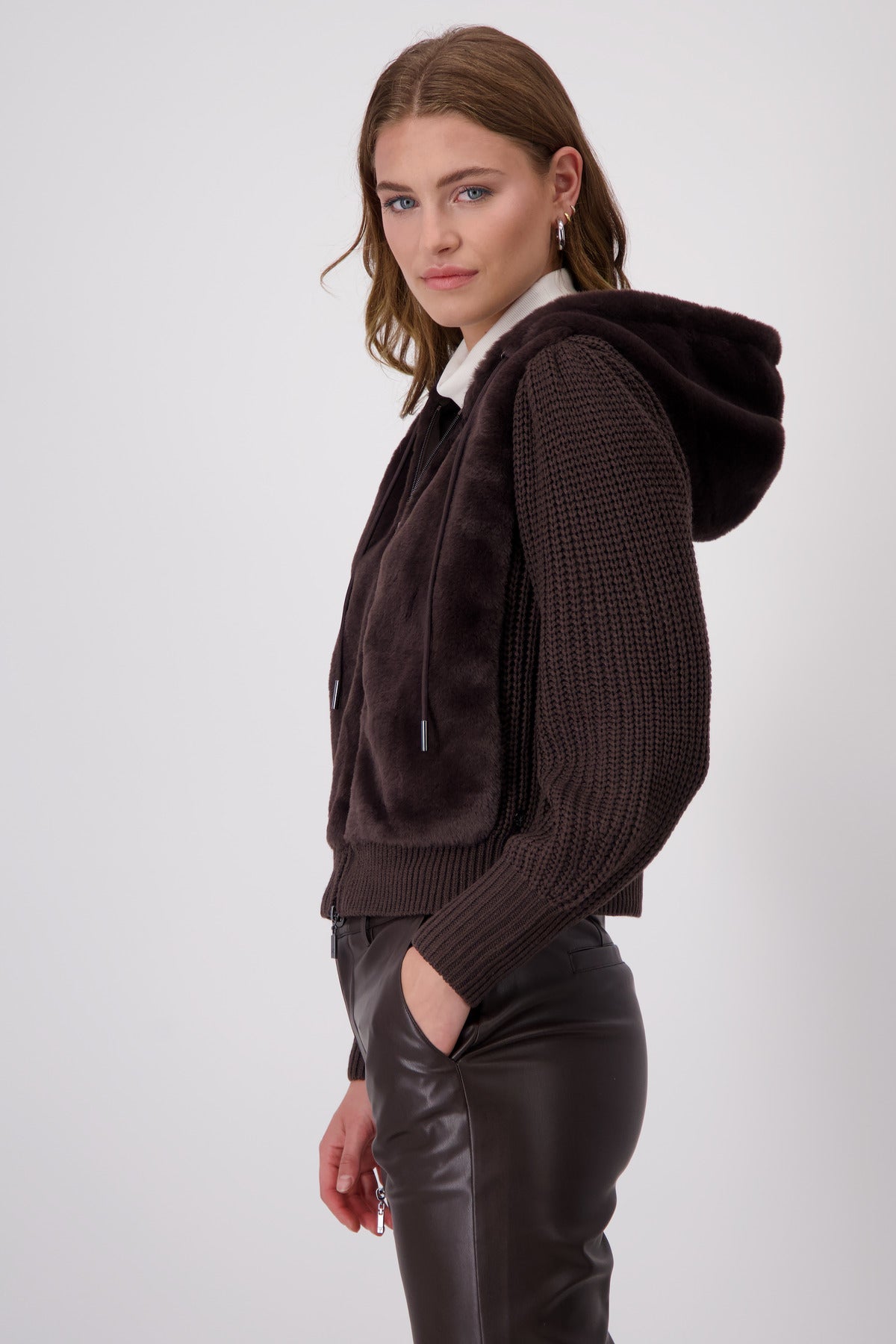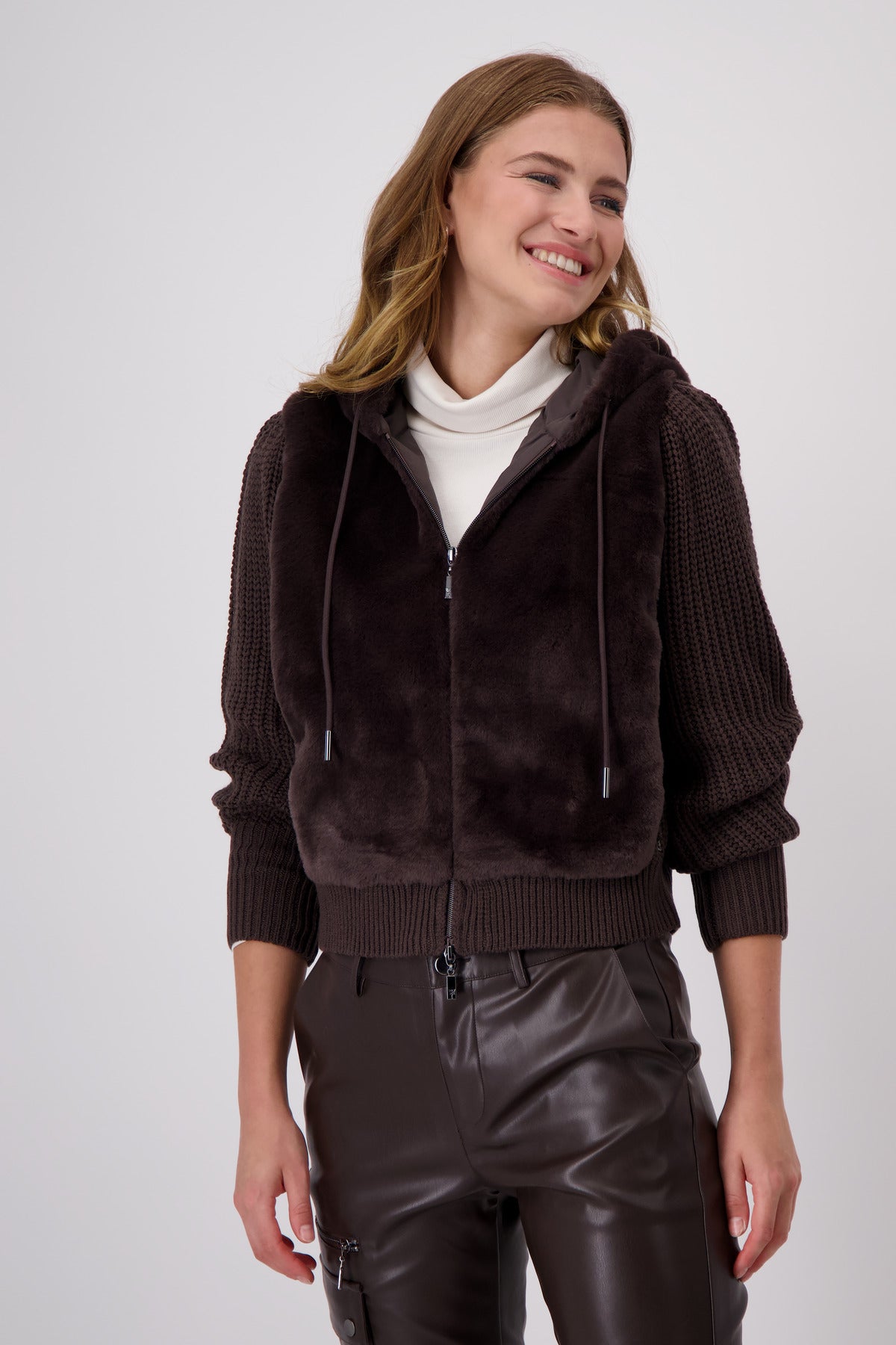 Die flauschige Strickjacke überzeugt mit ihrer weichen Haptik und dem schönen Perlfangmuster. Die Kapuze und die Vorderseite sind mit kuscheligem Fell besetzt.Material 1: 100 % Polyester; Material 2: 50 % Wolle, 50 % Polyacryl; Futter: 100 % Polyester