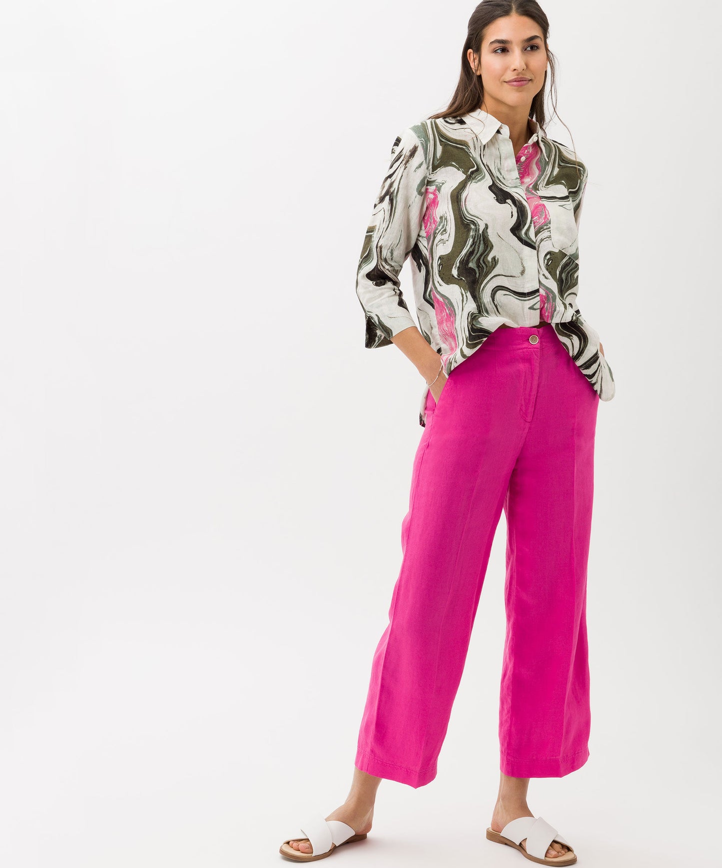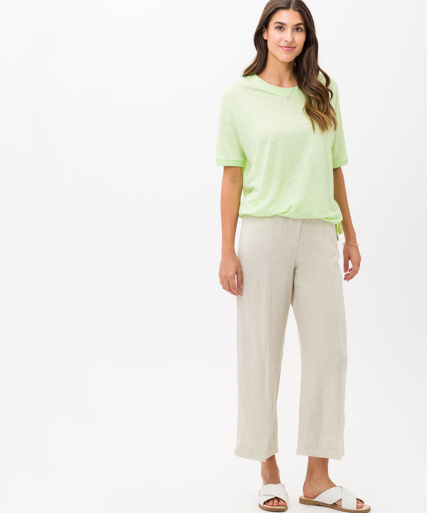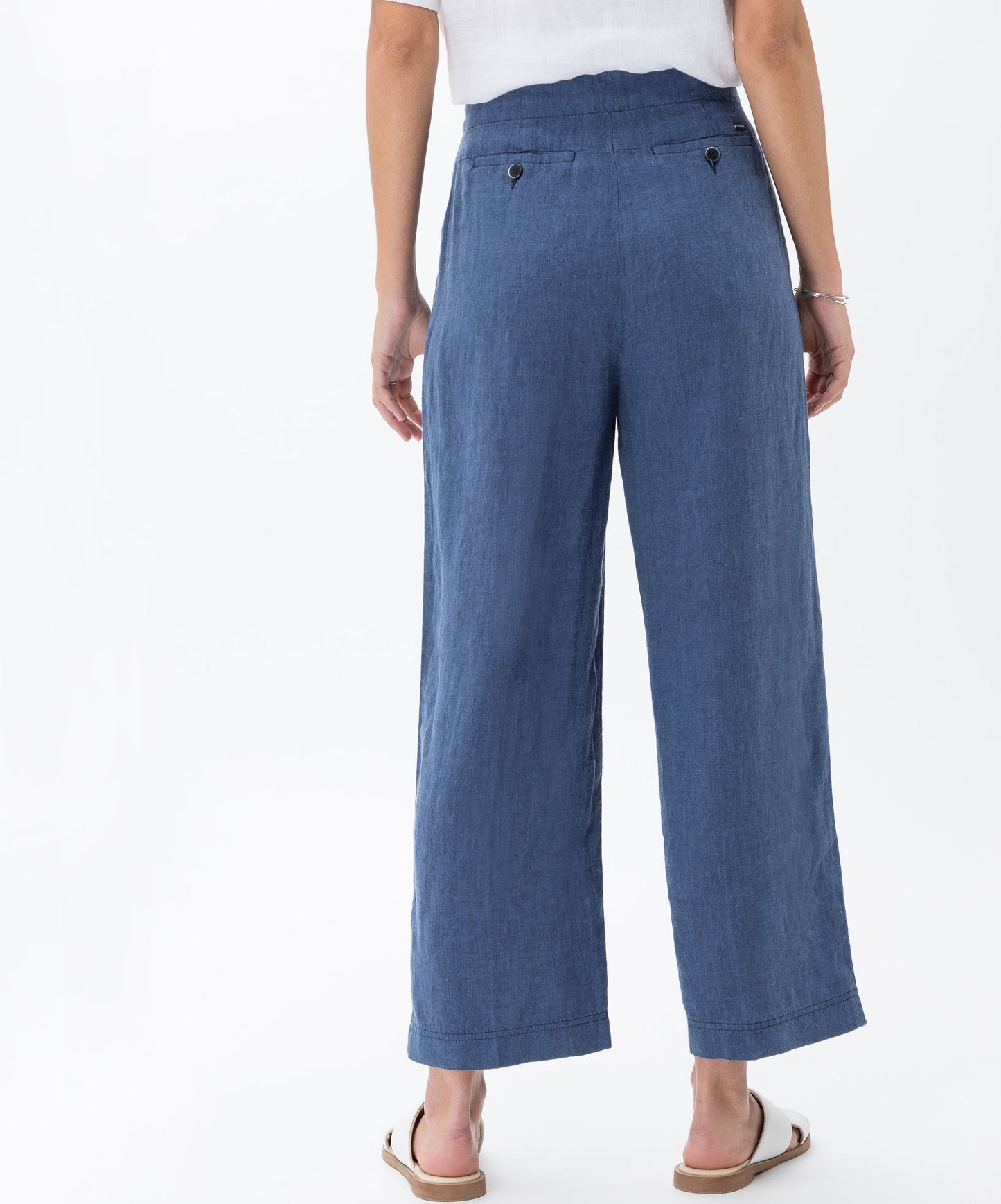 Ein Everyday-Piece für Damen ist der Style MAINE S. Stilsicher und modern schafft die 6/8 Wide Leg Hose in jeder Kombination einen smarten Look. Die Relaxed Fit Damenhose sitzt lässig mit regulärer Taille und ausgestelltem Schnitt an Gesäß und Beinen. Eine typische Optik erhält die Hose insbesondere durch das aufwendige Taschendesign. Zusätzlich ist sie mit Knöpfen in Hornoptik, Bügelbruch und Logo-Applikation gestaltet. Die kühlenden und schnell trocknenden Eigenschaften machen Leinen zur First Summer Choice. Der charakteristische Knittereffekt kennzeichnet die luftige und leichte Naturfaser. Das atmungsaktive und hautfreundliche Leinen bietet außerdem bei dieser Wide Leg ein einwandfreies Tragegefühl.<