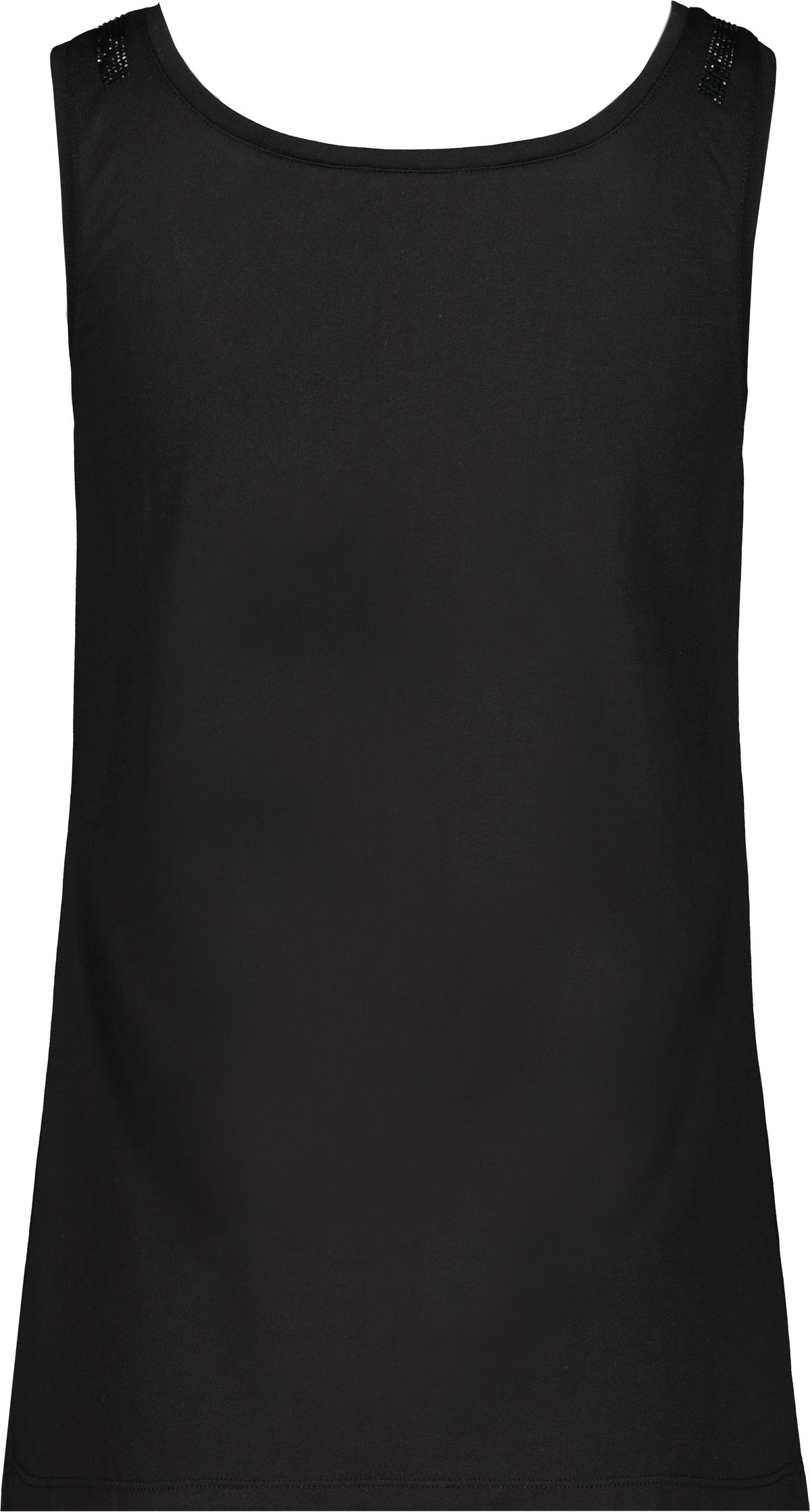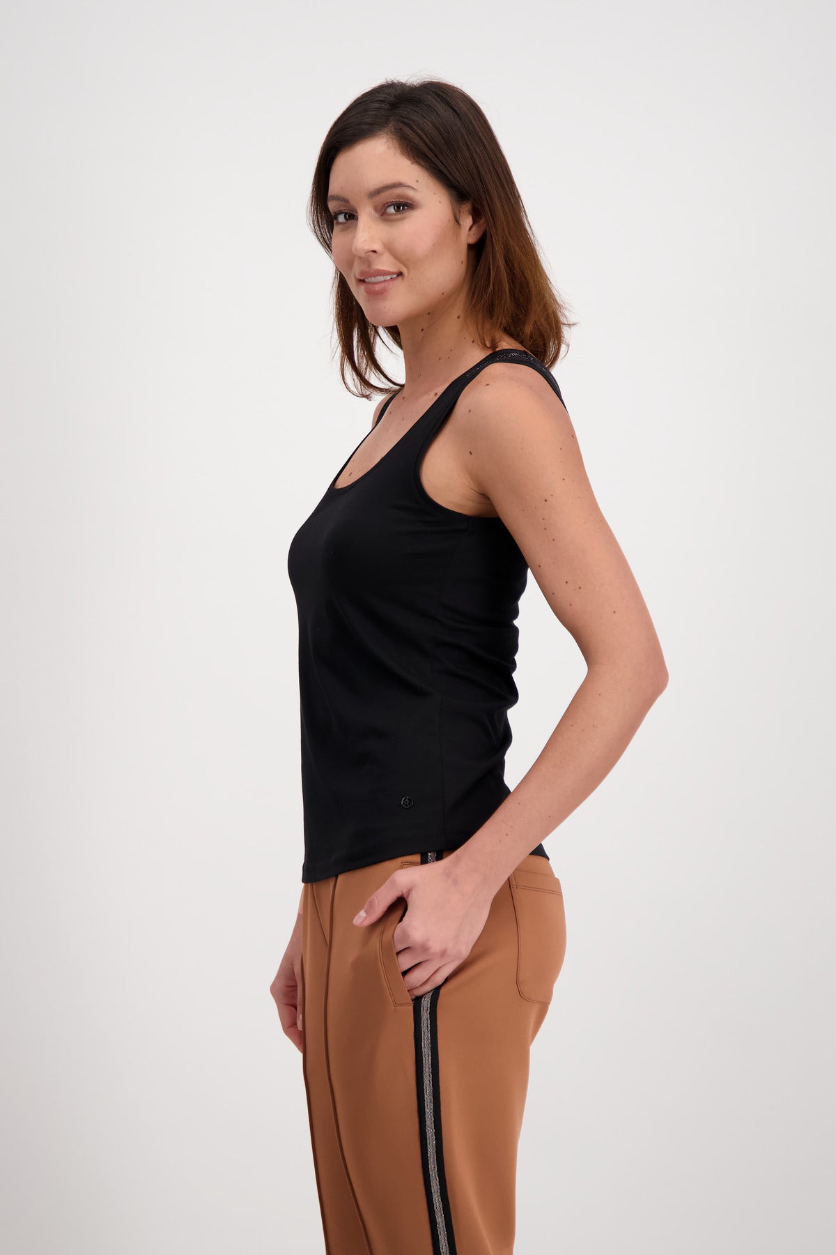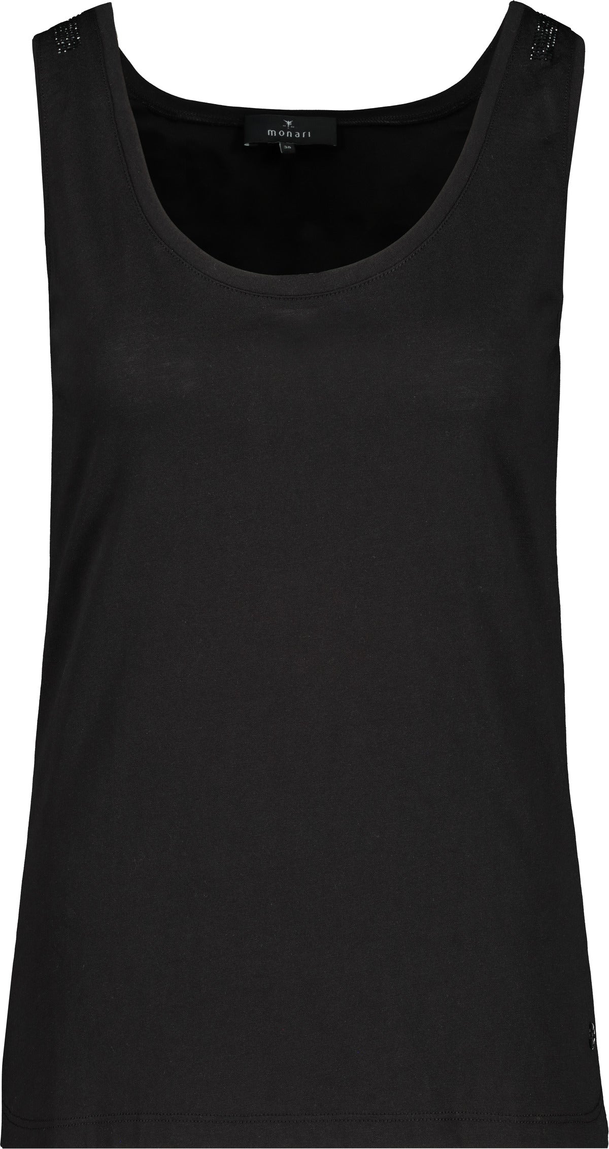Ein hübsches Essential für jeden Kleiderschrank ist dieses qualitativ hochwertige Tanktop von monari. Der Regular Fit wird von einem Rundhalsausschnitt mit kleiner Blende und einem leicht abgerundeten Saum geprägt. Freuen Sie sich auf dieses unifarbene, ärmellose Modell mit funkelndem Strass Träger. Sagen Sie nicht Nein.50% Baumwolle, 50% Modal