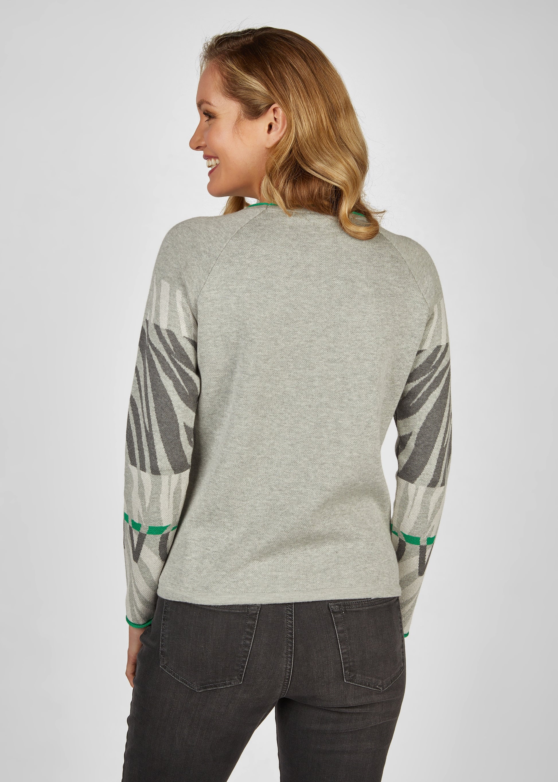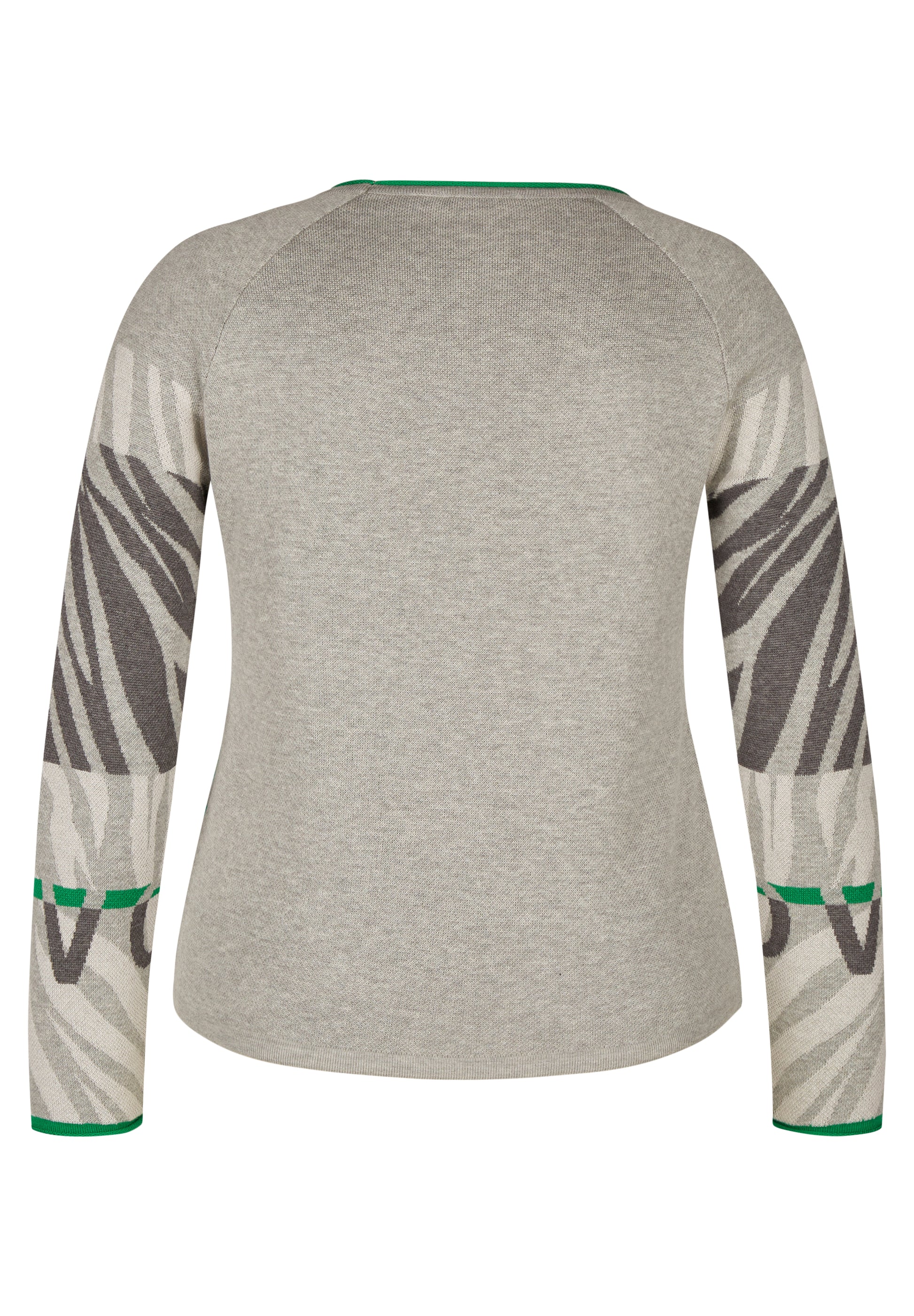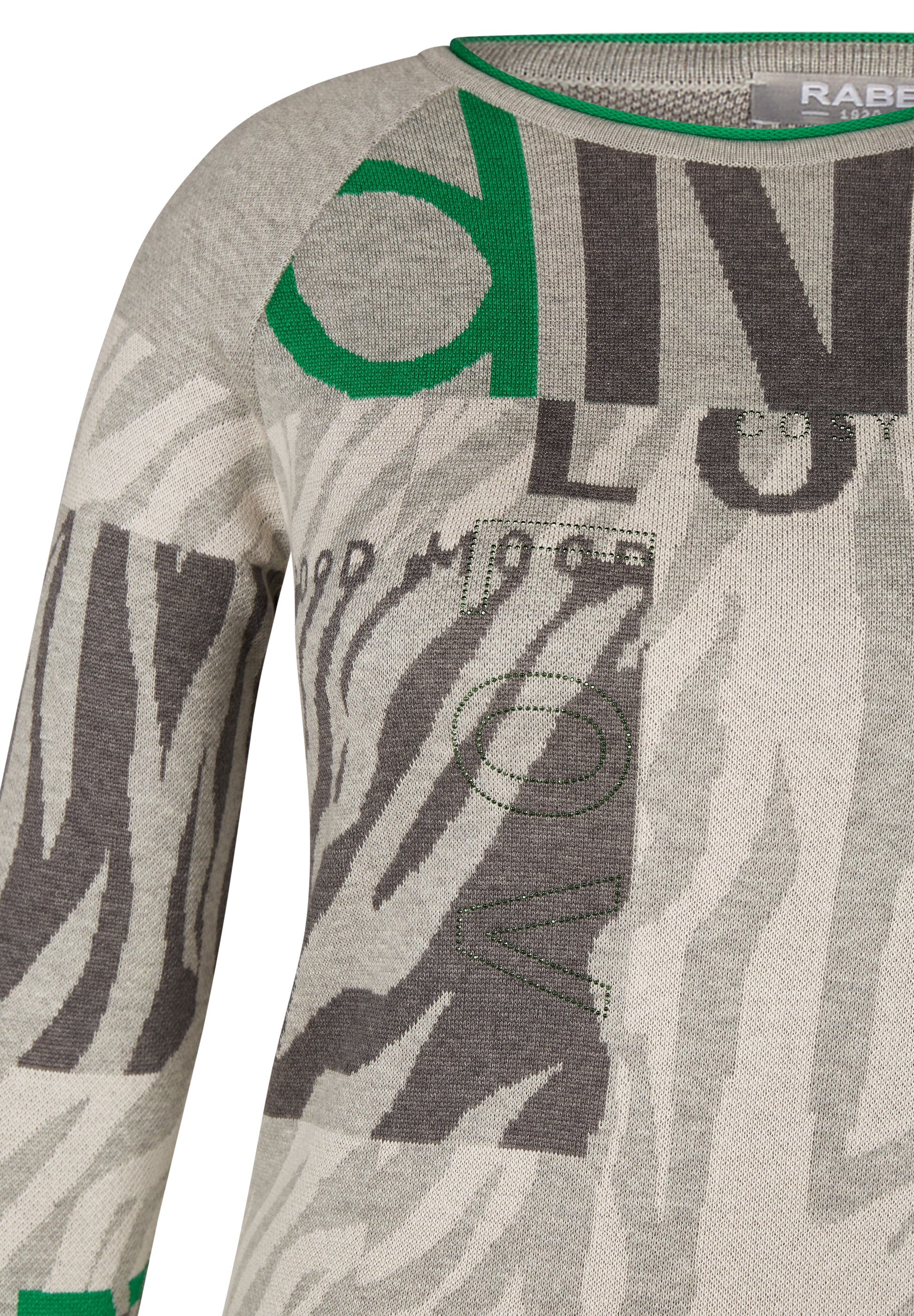 Unser trendiger Pullover mit grünen Akzenten ist ein absoluter Hingucker! Mit eleganten Bändern am Saum und funkelnden Strass Details verleiht er jedem Outfit das gewisse Extra. Das einzigartige Design kombiniert geschickt Wording und Animal-Motive und sorgt so für einen individuellen und stylischen Look. Holen Sie sich diesen modischen Pullover für die kommende Saison.50% Baumwolle, 50% Polyacryl